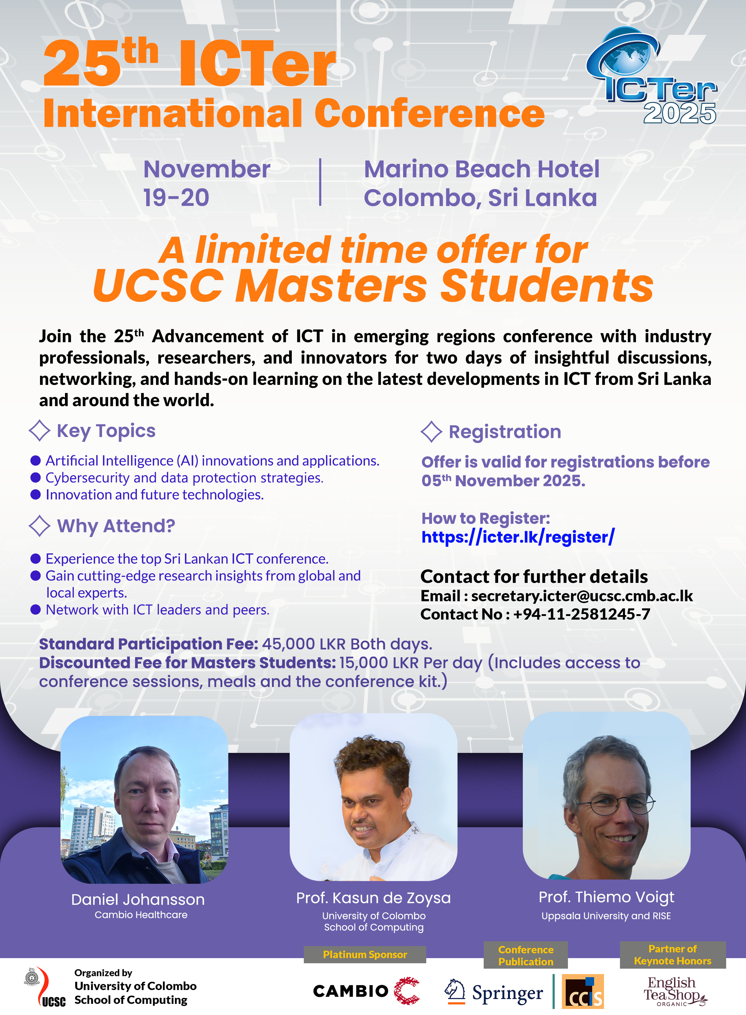 For further assistance, please contact the Examinations & Registration Division via exam@ucsc.cmb.ac.lk (cc: rpr@ucsc.cmb.ac.lk) or 011-2581245 (Ext: 6071) from 9.00 am to 3.30 pm on weekdays except for holidays.